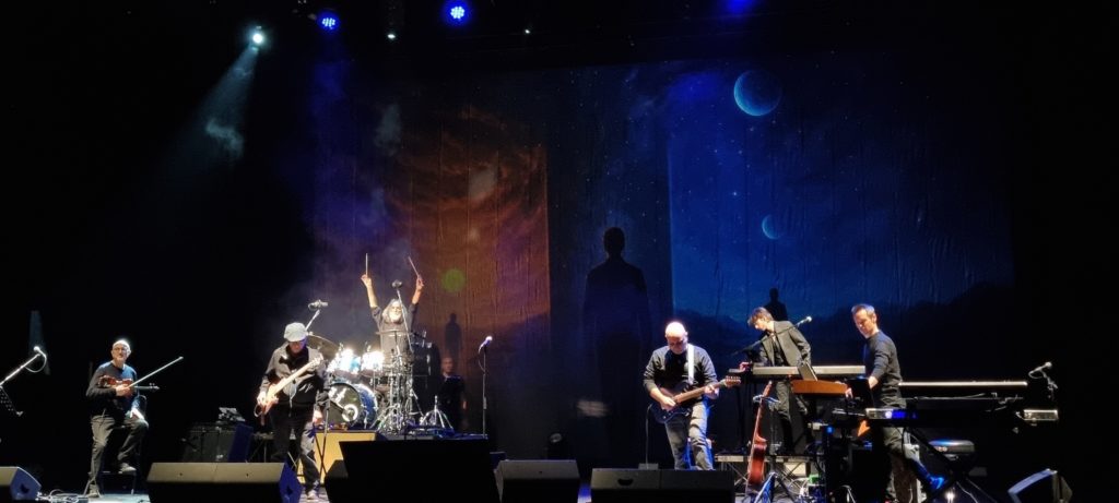 Le inquietanti note iniziali di Mondi Paralleli annunciano l’ingresso in scena del main act – accolto come sempre da scroscianti applausi – che segna il gradito rientro in formazione di Luca Zabbini (leader e voce dei Barock Project alle tastiere, organo Hammond e chitarra acustica), in evidente recupero fisico dalla encefalomielite lieve a livello del midollo spinale e cerebrale che lo ha colpito in tarda primavera. Assente, invece, uno dei cofondatori del gruppo Flavio Premoli, benché la locandina affissa all’entrata del teatro lo indichi quale ospite.