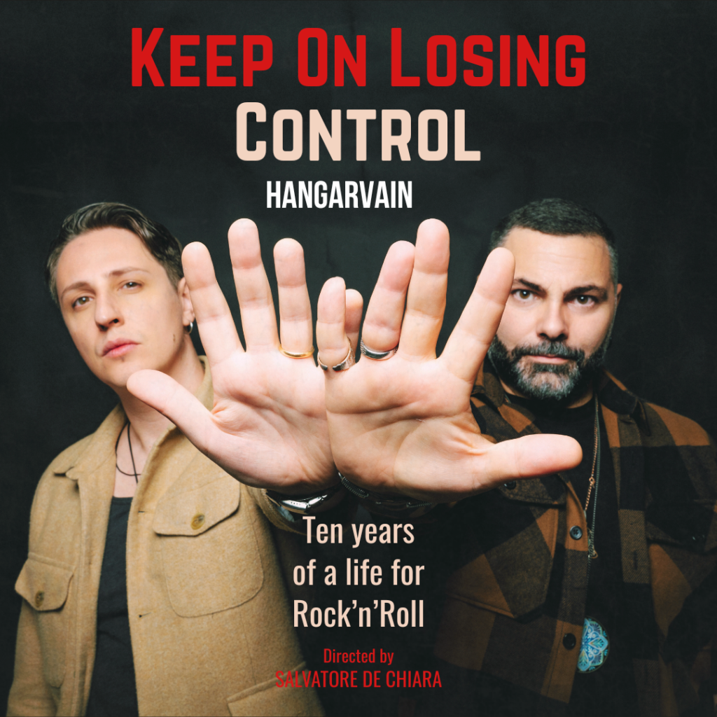 Gli Hangarvain sono una band rock nata a Napoli dieci anni fa dalla passione e dall’amicizia di due giovani innamorati della musica e determinati a vivere la loro passione fino in fondo. Nel corso degli anni il gruppo ha pubblicato sei album di successo internazionale e tenuto concerti in tutta Europa e Giappone, arrivando a dividere il palco con artisti di fama mondiale come The Darkness, Gilby Clarke dei Guns ‘n’ Roses, Skillet, L.A. Guns, Slipknot, Mercyful Faith e molti altri. Quella degli Hangarvain è una storia di amicizia, musica e resilienza che partendo dal Sud d’Italia, ha saputo costruire un percorso di credibilità e impatto internazionale. Questo viaggio ultradecennale, è stato raccontato nel documentario “Keep On Losing Control – Dieci anni di vita rock’n’roll”, per la regia di Salvatore De Chiara, che attraverso testimonianze, video, fotografie e il racconto diretto dei protagonisti, porta sullo schermo un’avventura avvincente partita dalle pendici del Vesuvio per conquistare il Mondo.